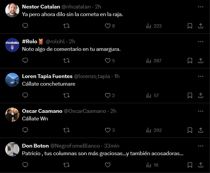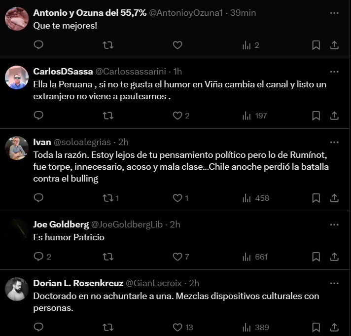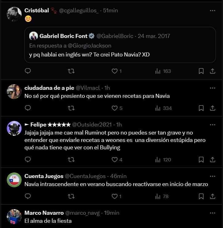 Las críticas de Navia no pasaron desapercibidas entre los usuarios de la plataforma, quienes, aún celebrando el éxito de Ruminot, respondieron en masa a sus comentarios. Algunos apoyaron su opinión, pero la mayoría reaccionó con ironía y desaprobación.