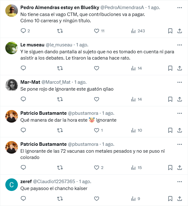 Ahora como precandidato presidencial, Kaiser no ha moderado el tono, sino que lo ha endurecido. Repite eslóganes sin sustancia, apela al miedo y explota la desinformación como herramienta política. Más que plantear soluciones, busca likes con frases chocantes. Su campaña parece nutrirse más de los algoritmos de YouTube que de un programa serio de gobierno. En tiempos donde Chile necesita consensos y liderazgo responsable, figuras como la de Kaiser representan un retroceso peligroso: ruido sin contenido, furia sin dirección y discursos vacíos camuflados de valentía ideológica.