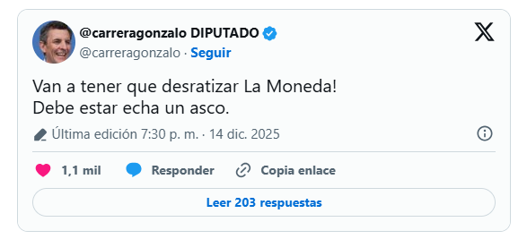 Tremenda desubicada se mandó el diputado Gonzalo de la Carrera. En su cuenta de X rozó lo indecoroso tras mandarse estas celebradas:
