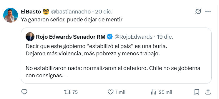 Parece que Rojo Edwards se quedó pegado en el 13 de diciembre, a horas del balotaje, de otra manera no se explica el por qué, sigue con el jugo hacia el gobierno.