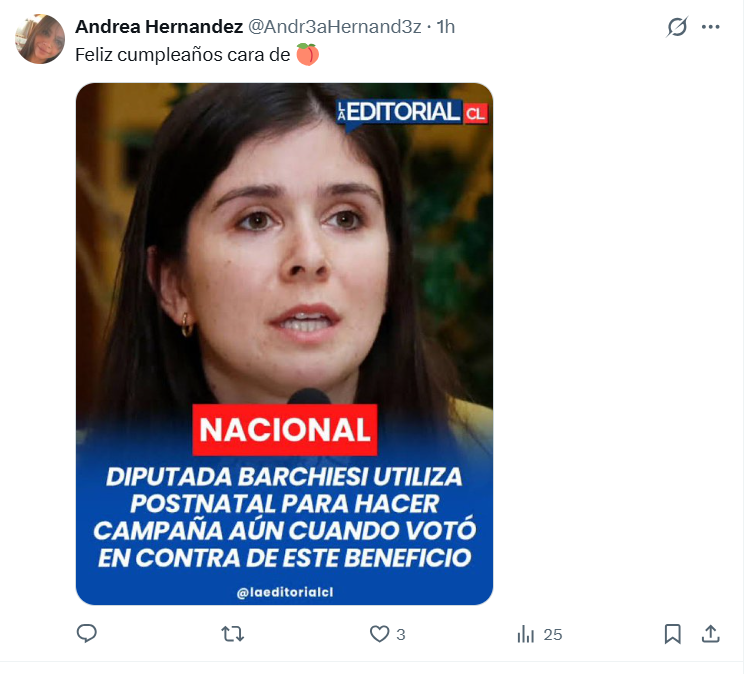 La Chiara Barchiessi está de cumpleaños, y la bancada republicana no quiso quedar ajeno a tal evento. El problema es que la “gallá” tampoco quiso quedar ajena, lamentablemente no lo hio con felicitaciones … xd