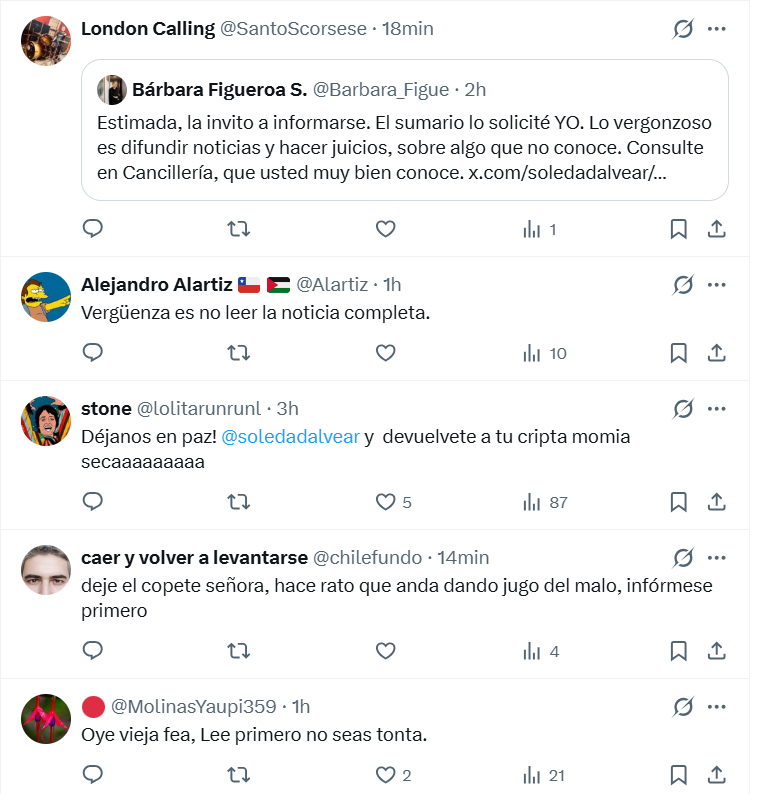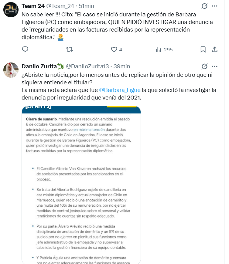 El cahuín de la tarde. Todo comenzó cuando un facho de la jauría de José Antonio Kast, soltó una noticia imprecisa referente a Bárbara Figueroa. Claro, al hombre se le olvidó aclarar que la misma Bárbara había pedido el sumario por las irregularidades.
