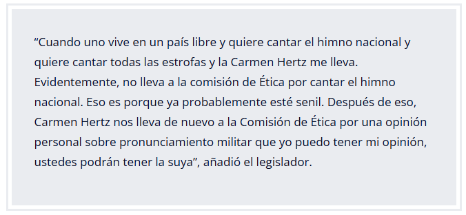 Labbé también abordó las críticas provenientes desde su propio sector político, señalando que ese tipo de reproches son los que más le afectan. Asimismo, respondió a un mensaje de Carmen Hertz en X, donde ella advertía que lo llevaría a la Comisión de Ética de la Cámara. Al respecto, el parlamentario restó importancia a la eventual sanción y cerró con ironía, asegurando que ya está acostumbrado a pasar por esa instancia y que las acciones en su contra no lo harán modificar su postura.