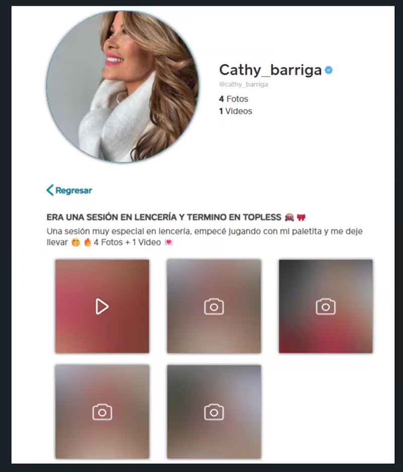 La cuenta fue inaugurada el pasado 27 de diciembre y el acceso al contenido tiene un valor mensual de 20 dólares. En la descripción de parte del material, la propia Barriga adelantó que se trata de una sesión especial, acompañada de mensajes sugerentes que rápidamente llamaron la atención en redes sociales.