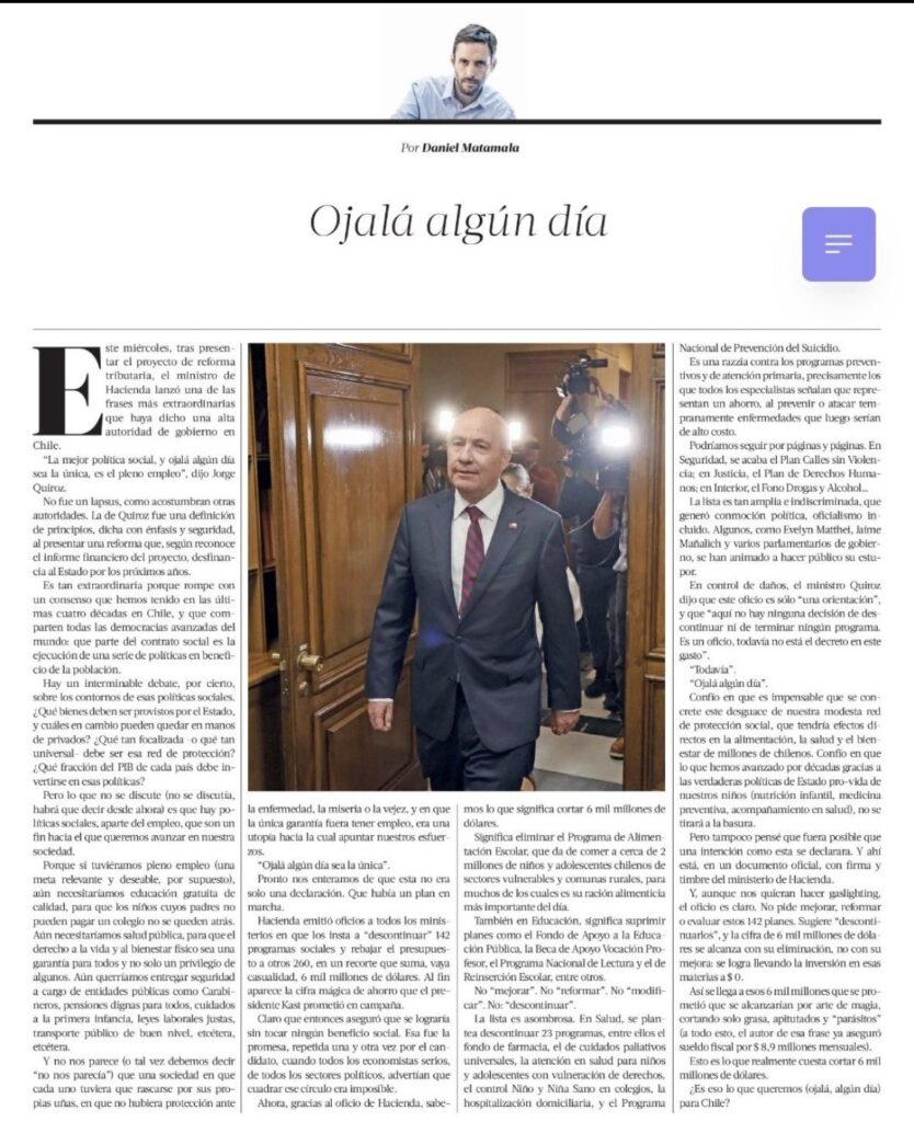La columna plantea un escenario inquietante: bajo el discurso de eficiencia y ajuste fiscal, lo que se perfila es un recorte profundo a la red de protección social. La idea de que “la mejor política social es el empleo” aparece no como un complemento, sino como una excusa para desmantelar programas que hoy sostienen a millones. El problema no es la aspiración al empleo pleno, sino usarla como argumento para retirar apoyos concretos que siguen siendo necesarios en la realidad actual.