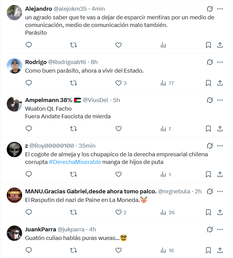 Las reacciones no tardaron en llegar y el foco se desplazó rápidamente desde la radio hacia su trayectoria política. En redes, varios usuarios recordaron su rol activo en la campaña del Rechazo y lo vincularon con piezas comunicacionales que, a su juicio, habrían contribuido decisivamente a ese resultado. Todo, por supuesto, en clave opinativa y con abundante sarcasmo.